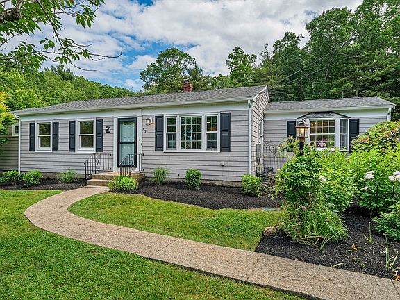 Inviting home nestled on a privately situated lush 3/4 acre lot in a lovely neighborhood! This 3 bedroom home features easy breezy one level living with a magnificent vaulted ceiling primary suite with large walk in closet. The well appointed kitchen with stainless appliances is open to a spacious living room and french doors that lead to a charming dining room with picture window. The vaulted ceiling family room is sun drenched and has sliders to deck and delightful private fenced in backyard. The basement is partially finished for more leisure space and abundant storage. Many recent updates include new gorgeous hardwood floors throughout, HVAC / water heater, Andersen windows and sliders, roof, ceiling fans, irrigation, fence, generator, Reeds Ferry shed. Convenient to highway, schools, beaches, shopping and more!