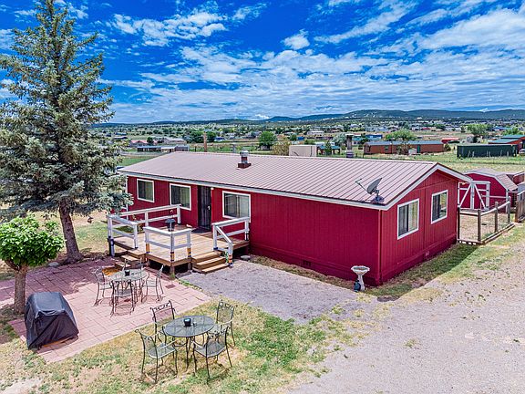 Well-maintained and clean 3-bedroom, 2-bath home! Fresh exterior paint completed in June 2025 (deck is being finished up with paint also.) Enjoy the convenience of paved road access and plenty of space for your livestock, pets, and hobbies. The property is fully fenced, with an additional fenced pasture or pen in the backyard; perfect for turning animals out or even riding horses around. Features include a 24x24 insulated detached garage and an 8x10 hay or equipment shed that can double as a stall or animal shelter. A versatile 12x20 insulated room (a converted greenhouse) with windows and skylights adds even more flexibility. There's plenty of space for parking trailers, RVs, and toys. Conveniently located just 10 minutes from Edgewood and 20 minutes from Albuquerque!