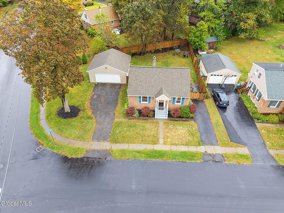 *Open House Sat. 10/18 11a-1p* Fall in love with your perfect starter home at this updated 3 bed, 1 bath Cape on a rare double lot in the heart of Colonie. Curb appeal abounds with beautiful landscaping & a charming brick exterior. This home delivers so much more than you might expect - from the extensive finished basement to the oversized 2 car garage. Whip up delicious meals in the remodeled kitchen featuring newer cabinets, custom tiled backsplash, granite counters, and newer appliances. Gather in the formal dining room under the stylish mid century modern chandelier. Or take the party outside to the deck overlooking the large fully fenced backyard. Curl up in the cozy living room with adorable built in shelves. You choose whether to make the 1st fl bedroom the primary or use it to work from home or host guests. Get fresh in the trendy bathroom with antique gold accents. Finished basement adds so much living space - perfect for a family room, game room or home gym. You'll enjoy the peace of mind of a professional dry basement system from Adirondack Basements. Keep comfortable year round with energy efficient ductless A/C, tankless hot water heater and replacement windows. Roof 13yrs, So much offstreet parking with 2 separate driveways. Just a stone's throw to a pocket park and minutes to Central Ave and I-87 for commuting, dining or shopping. South Colonie Schools.