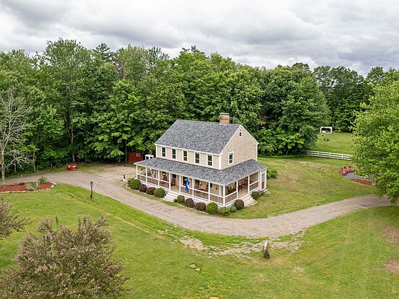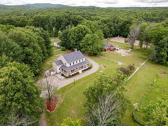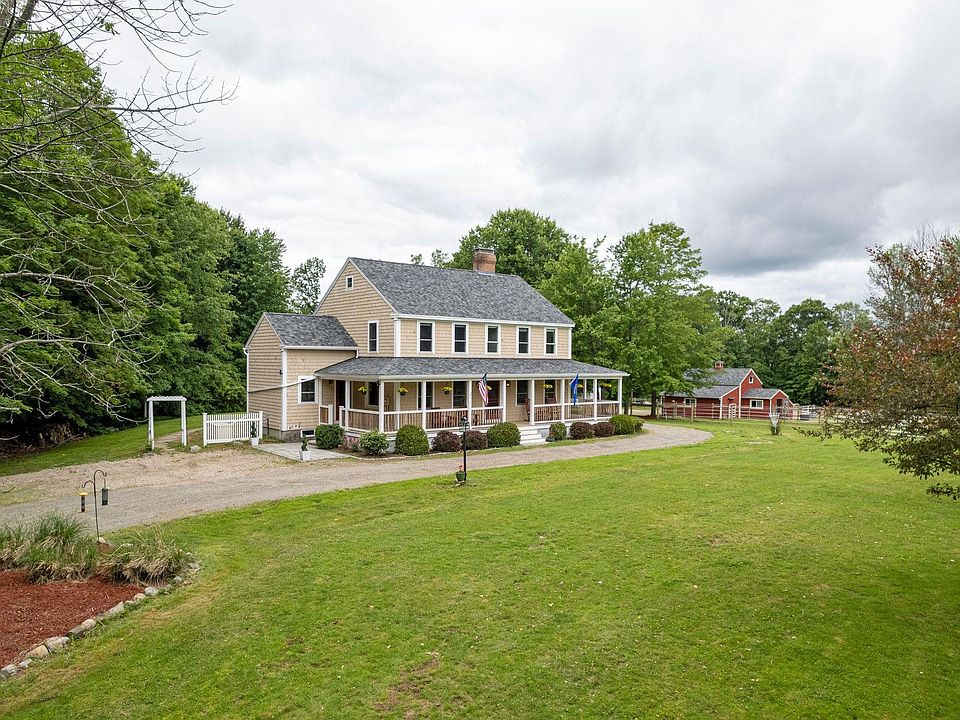 Welcome to Baffogne Family Farm, a quaint Equestrian Estate in the heart of Deerfield, NH. Drive under the trees to this colonial home set on 3.15 acres of green pasture. Enjoy the open concept kitchen/dinning area. A sun filled living room, with a wood burning fire place, where you can sit and watch the horses graze. 3-4 bedrooms, one of which is on the main floor, 2 full baths, an office/den, family room, mudroom, and screened in porch. Enjoy the views of your private farm with the wrap around farmers porch. The 4 stall barn includes a tack room, matted stalls, hay loft, and a new outdoor wash stall installed in 2021. Fenced grass paddocks updated in 2021, with direct access to the stalls makes for a dream set up. The GGT outdoor ring measures 75’ x 175’ and was added in 2021, with full drainage and a viewing deck. Centrally located with a 45 minute drive to Portsmouth, 30 minutes to Manchester-Boston Regional Airport, and 1 hour to Boston. Nestled between Bear Brook and Pawtuckaway state park. This property is a rare find! Showings begin at the open house on Friday June 23rd from 3:00pm - 5:00pm.