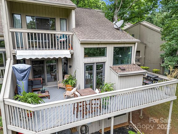 Imagine yourself in this stunning 4-bedroom, 3-bathroom condo located in River Hills, a gated community with lakefront views and a golf course. This end unit offers scenic water views and features a recently remodeled interior with a serene atmosphere. The home boasts an abundance of natural light, a wrap-around deck with lake views, and a modern kitchen with open shelving, quartz countertops, and a 36-inch Thermador gas range. The main level includes a bedroom and a bathroom, while the upper level offers an office space, a primary bedroom with vaulted ceilings and an updated bathroom, as well as a large walk-in closet. The lower level consists of a spacious living or bonus room, two additional bedrooms, a full bathroom, a laundry room, storage closets, and an outdoor porch with views of the lake. As a bonus, the private pool for Bluff Villas owners is just around the corner. If tennis, golf or boating is in your future, you can join the country club and marina for an additional fee.