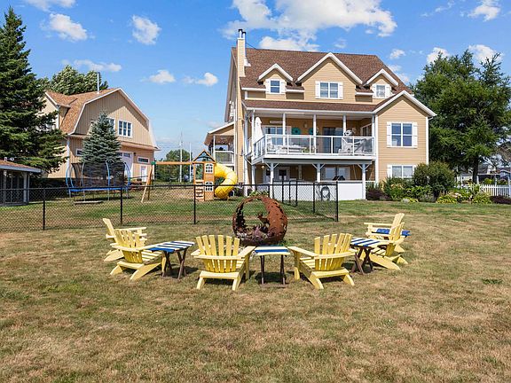 Waterfront retreatVaulted ceilingsFloor-to-ceiling stone napoleon fireplaceGourmet kitchenCommercial-grade kitchenaid appliancesSpacious dining areaLoft-style family room