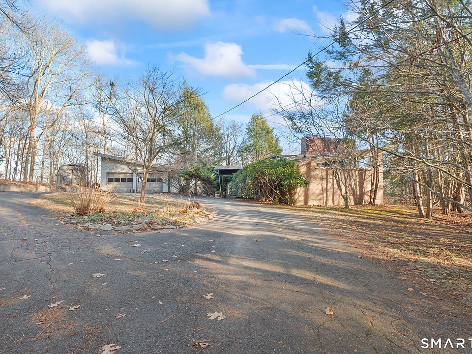 MULTIPLE OFFERS RECEIVED - all offers due WEDNESDAY, 12/31, by 7pm. Authentic Mid-Century Modern retreat set on over 3 private acres, this truly one-of-a-kind home celebrates timeless design and architectural integrity. Original finishes remain beautifully intact, highlighted by soaring vaulted ceilings and dramatic two-story windows that flood the home with natural light and offer seasonal views of Andover Lake. True to its mid-century roots, the home features fascinating yet highly functional details, including hidden compartments, custom built-in storage, and thoughtfully designed display casings throughout. A stunning library with a classic step ladder and cozy reading nook is bathed in sunlight from the expansive two-story windows, creating an inspiring space for relaxation or study. The open-concept living and dining areas are framed by walls of glass and vaulted ceilings, delivering a seamless flow and an airy, light-filled atmosphere. Solid steel beam construction adds both architectural distinction and enduring strength, blending form and function in iconic mid-century style. Additional highlights include a deck with seasonal lake views, green house, sauna, a detached two-car garage, and a circular driveway that enhances curb appeal and convenience. This remarkable property is a rare opportunity for mid-century modern enthusiasts and must be seen to be fully appreciated. Home sold AS-IS. Pricing of this home reflects some necessary repairs particularly the garage roof. roof is stone and tar. Roof contractor said that the main house roof is in very good condition.. prior chimney lead was repaired. Interior cosmetic repair is necessary. Ceiling stain in bedroom is believed to be from the duct work and not the roof.