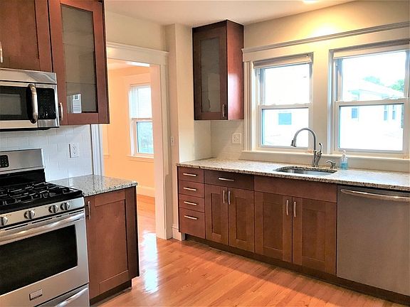 Sun-filled 3-bedroom unit available for November 15th occupancy. Unit is on the second floor of a two-family house, featuring many updates including a newer kitchen with granite countertops and stainless steel appliances, modern bathroom, formal dining room, living room, hardwood floors throughout, front enclosed porch, back porch, yard, off-street parking, private in-unit laundry, central heat/air.