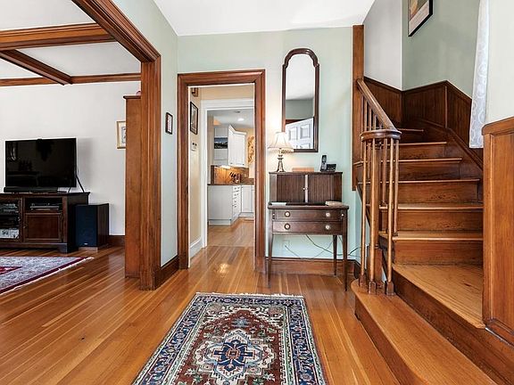 Located in the heart of North Brookline, this beautiful 4 bedroom Colonial home is ready to welcome a new family. Beamed ceilings, a fireplace, and original wainscoting give the home charm. A cozy sunroom, perfect for Sunday morning coffee, an eat-in kitchen, a dining room for family meals, and powder room complete the first floor. Upstairs you'll find 4 bedrooms including a master bedroom with an en-suite bathroom. There is also a shared family bathroom on this level. Behind the home is a pretty back yard and patio to enjoy during the warmer weather, as well as a one car detached garage. The home has been well maintained and includes updated systems throughout. Just a short distance to the D line, Brookline Village, Coolidge Corner, and Washington Square, as well as numerous parks and playgrounds. This home is a wonderful choice for someone looking to be close to everything Brookline has to offer.