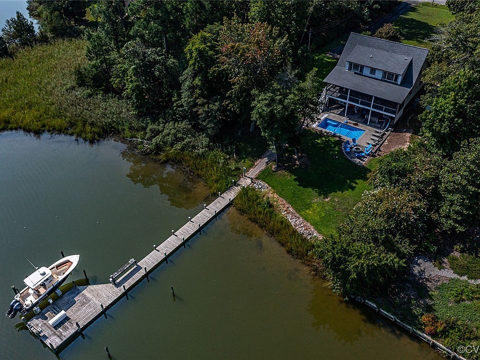 Cabin Point-Westmoreland County: The perfect waterfront retreat with incredible views out to the Potomac River all while being protected on the shoreline of Cabin Point Creek! This completely updated 4 Bedroom, 3 Bathroom Home has tons of great features for waterfront enjoyment including: pier with boat lift, Inground Heated & Chilled Salt Swimming Pool, Hot Tub, Paver-stone fire pit area & Incredible Screened Porch on the waterside. The stylish interior boasts an open floor plan, great for entertaining, Primary Bedroom on the main level & Full Bath. 2 Large Bedrooms and a Full Bath Upstairs, plus a 4th Bedroom or “Bunk Room” and large Game Room/Workshop Area on the Lower Level. All located in Cabin Point which offers wonderful amenities including: sand beach, boat launch, clubhouse, community pool, tennis courts & playground. Call today to schedule your appointment to see all that this home has to offer!