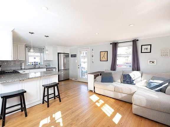 Green Harbor charmer! This bright and cheerful 2 bedroom/1bath ranch is the perfect starter home offering low maintenance vinyl siding, hardwood flooring, a fully renovated kitchen and bathroom. Awesome outdoor entertaining space with deck and patio. Town water, natural gas, and town sewer. NO flood insurance needed in this great spot so close to Green Harbor Beach and Duxbury Beach. Less than a mile to Peter Igo Park offering public tennis, pickle ball, basketball, volleyball and kayak launch. Welcome home to Marshfield!