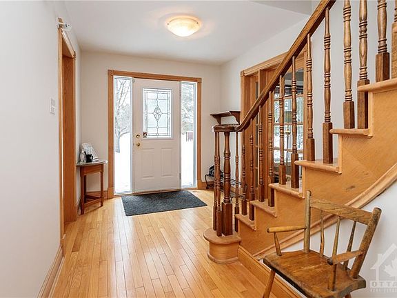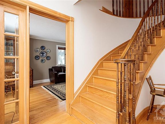 This stately brick home sits on a glorious 65 x 299' lot on a quiet street in a desirable, mature Stittsville neighbourhood. Centre hall plan offers generous foyer with curved, hardwood staircase. Open living & dining rms offer plenty of entertaining space. Lrg kitchen with island, separate eating area & family rm with fireplace overlook the sensational back yard. Separate main flr office for working from home. Powder rm, laundry & direct access to double garage, too. Upstairs, originally 4 bdrms, contains 3 spacious bdrms with lrg windows, hardwood & generous closets. The primary bdrm features 5-pc ensuite w/ 2 sinks, sep tub & shower plus walk-in closet. Finished basement has rec room w/ gas fireplace, plenty of storage & workshop with direct access to garage. Enjoy the sauna in the roughed in bathrm space. Protected land behind and Ottawa-Carleton Trailway steps away for cycling. Arena, schools and shopping all nearby. No conveyance of offers until Mar. 3rd.