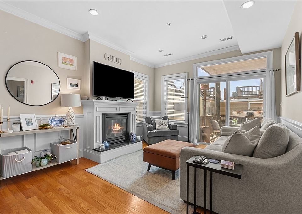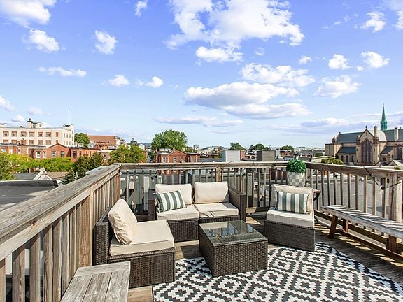 RARE 2 bed penthouse on the East Side of South Boston, featuring a private roof deck with sweeping city & water views! Set on a quiet side street, this pet-friendly home offers an open floor plan, hardwood floors, high ceilings, and abundant natural light. The modern kitchen features granite countertops, stainless steel appliances, ample cabinet space, and bar seating. The spacious living/dining area is anchored by a charming gas fireplace, perfect for entertaining or relaxing at home. The primary bedroom features a walk in closet, while the second bedroom includes additional storage making it ideal as a guest room or office. Step outside to your private, covered rear deck, ideal for summer evening & upstairs to the private roof deck with 360 degree views of the city & bay. Additional highlights include central A/C, extra basement storage, in unit laundry, and low HOA fee. Currently rented at $3,750/mo through 10/31.