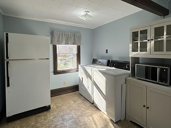 Large sized town lotOne level living opportunitiesNew flooringHot water heaterSpacious lawnWooded backyard