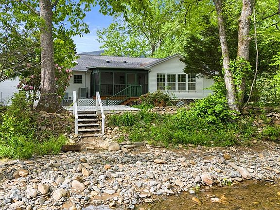 Custom-Built Creekside Retreat – One Owner Home. Experience the tranquility of trout fishing just steps from your back door at this exceptional 3BR/2BA custom home situated along the picturesque Tusquittee Creek in Clay County, NC. This residence features an attached garage and is surrounded by lush flower gardens that create a vibrant outdoor sanctuary for gardening enthusiasts and nature lovers. Inside, the expansive living room boasts a striking double-sided stacked stone fireplace that seamlessly connects to the dining area, while the spacious kitchen is a culinary delight, complete with a large island, ample cabinetry, and generous counter space. A bright sunroom bathes the home in natural light, and the screened, covered deck offers a perfect spot for year-round relaxation. The primary bedroom includes an en suite bath, complemented by two guest rooms that share a second full bath, along with a laundry room equipped with a wash tub and storage. This peaceful and private property is thoughtfully designed for an outdoor lifestyle, making it an ideal retreat for those who appreciate beauty, comfort, and a deep connection to nature.