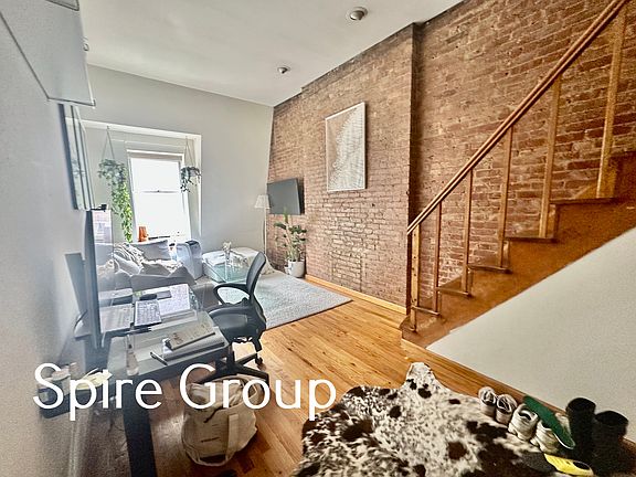Brownstone duplexExposed brickHigh ceilingsWalk in closetKing sized master bedroomPrivate roof deck