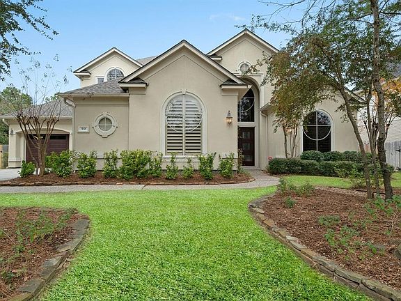 Stunning updated fully stucco contemporary style home located in the sought after Village of Alden Bridge offers 5 bedrooms, 4 full baths, a private study and a game room. Featuring architectural details throughout, including high ceilings, abundant crown moulding, large picture windows, transitional plantation shutters and a curved staircase. The open formal dining room and den offer a perfect space for entertaining complete with gas log fireplace and painted mantel. The bright island kitchen has granite counter tops, stainless steel appliances, and a sizable breakfast room with built-ins. Located on the main level you will find the master retreat with en-suite bath and a large walk-in closet. Other notable features include updated utility room built-ins, newly replaced air conditioning units, fresh paint throughout the home and a new roof (2019). The private backyard presents a covered patio with a sparkling pool and spa with a safety pool fence and a volleyball net.