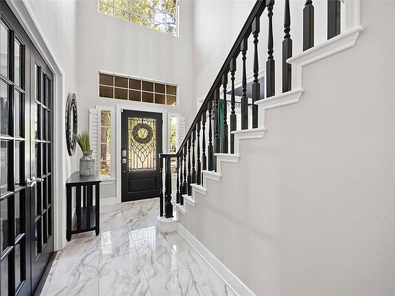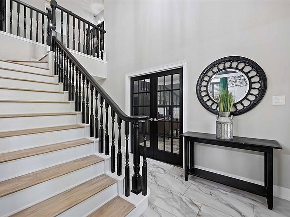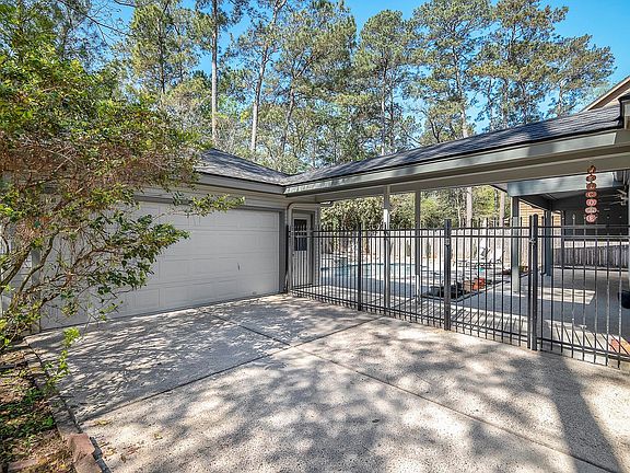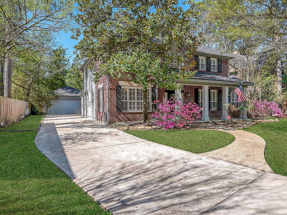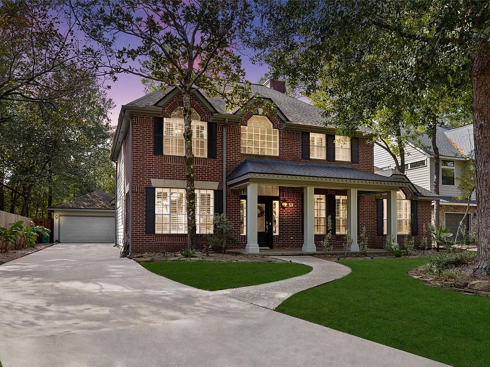 This home has elegant white columns and a large porch. Dark wood floors, large windows and nice-sized rooms makes this home very appealing. A fireplace in the formal and family rooms provides flexibility. Plantation shutters, granite double ovens, gas range, breakfast bar, crown moulding, French doors, tankless water heater, Texas basement, are amoung many features that this home has to offer. Awesome backyard with recent heated pool/spa, oversized covered patio and a large yard. Workshop in garage with shelves. Great location, close to schools, shopping, hospitals, golf courses and many other attractions within The Woodlands.