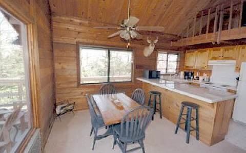 Enjoy amazing long-range mountain views from both lower and upper decks, the great room, kitchen, loft, and the private hot tub room in this beautiful cedar log cabin. The spacious great room features a high cathedral ceiling and a large stone fireplace. The partially finished basement, accessed from the lower deck, has a game room, bedroom and full bath. Amenities include access to four great fishing lakes, swimming pool, and nature trails. This cabin is move-in ready and is offered fully furnished