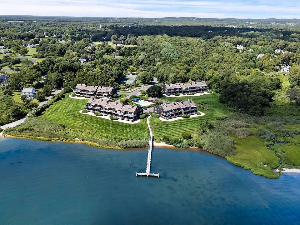 Villas on the Bay, this upper level condominium is positioned directly on the water, in a most sought-after complex in East Moriches. Magnificent views of protected Harts Cove, on to Moriches Bay and beyond to Dune Road, and the Atlantic. Offering 1,500 sq.ft. of living space with two bedrooms on the main level and and two full bathrooms, one of which is the en suite for the primary. The living room with L-shaped dining area opens to the kitchen. The most spectacular waterfront vistas through 3 sets of sliding glass doors that lead to the private deck. On the second level is a loft and a den. There is a garage and basement in tandem. The community encompasses 35+/- acres and features a heated pool, tennis and pickle ball courts, as well as a lovely tranquil pond. The grounds are meticulously maintained for year-round beauty making this condo a home for all seasons with an ever-changing outdoor show and wildlife abound. Don't miss this rare opportunity to make this your own and enjoy condo living at it's very best., Additional information: ExterioFeatures:Tennis,Interior Features:Lr/Dr