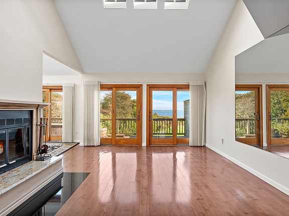 Villas on the Bay, a very sought after community sited on the quiet waters of Harts Cove with magnificent vistas onto Moriches Bay and beyond to the Atlantic. This upper end-unit with 2 bedrooms, 2 baths, one an en-suite, living room, dining area, kitchen with plenty of storage, a washer and dryer in the unit, and a huge deck overlooks paradise. The second level has a loft space and den. The main floor has vaulted ceilings and because it is an end unit there are fabulous views of the woods and the pond on the community's multi-acre property. There is a one car garage and basement in tandem. The amenities at Villas on the Bay include two tennis and pickleball courts, a heated gunite 50' pool, chaises and tables for your convenience and a shaded canopy. The wildlife is spectacular with many species of birds, Blue Heron, Cranes, and many other beautiful bird life, including the 2 swans that have made their home on the waters at the Villas. Spectacular sunrises are right outside your windows and sliders. The enjoyment of nature and beautiful glistening water offers an abundance of serenity and privacy. A perfect year round rental, bring your own furniture and settle into a restorative lifestyle