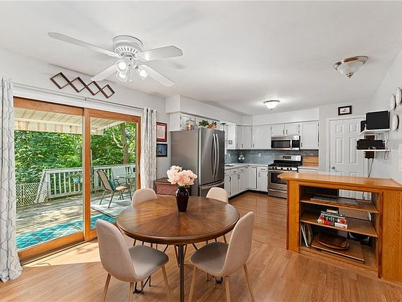 Welcome to this stunning 2 to 3 bedroom ranch home, complete with a full walkout basement! This move-in-ready gem boasts numerous impressive updates, including sleek quartz countertops in the kitchen and a completely remodeled full bathroom upstairs, featuring a luxurious glass-enclosed shower. The home also offers a brand new 30-year roof, a 3-year-old efficient natural gas forced hot water heating system, and a 4-year-old 40-gallon hot water tank, ensuring comfort and peace of mind. Enjoy the high ceilings and the spacious, open floor plan that creates a bright and airy atmosphere throughout. Step out from the dining area onto your expansive private deck, which gracefully descends to the side and back yards and a charming patio area—perfect for outdoor entertaining or peaceful relaxation. The lower level is a true walkout basement that currently houses a versatile office space, which could easily be converted into a third bedroom. This level also includes a storage area, a half bath, a utility area, laundry facilities, and ample space for a recreation or common area, offering endless possibilities to suit your lifestyle needs. Additional features include an updated 200 amp circuit breaker system, connection to public utilities, and freshly manicured landscaping that enhances the home's curb appeal. Situated in a desirable neighborhood and just moments away from all the conveniences you need, this home is ready for you to move in and start making memories.