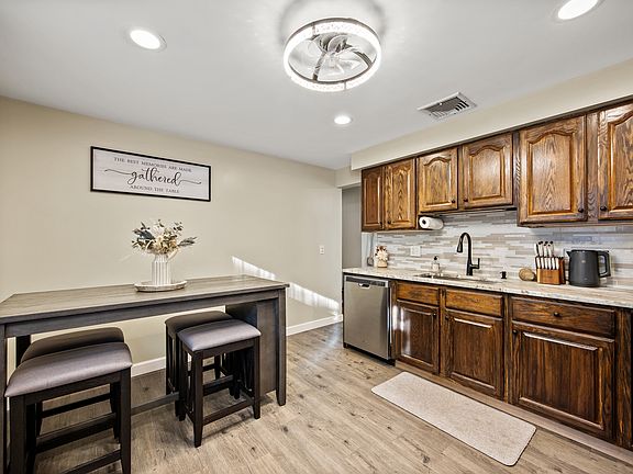 Whitewashed fireplaceCentral air conditioningDeep one-car garageSolar panelsWide drivewayModern finishesNewly renovated bathroom