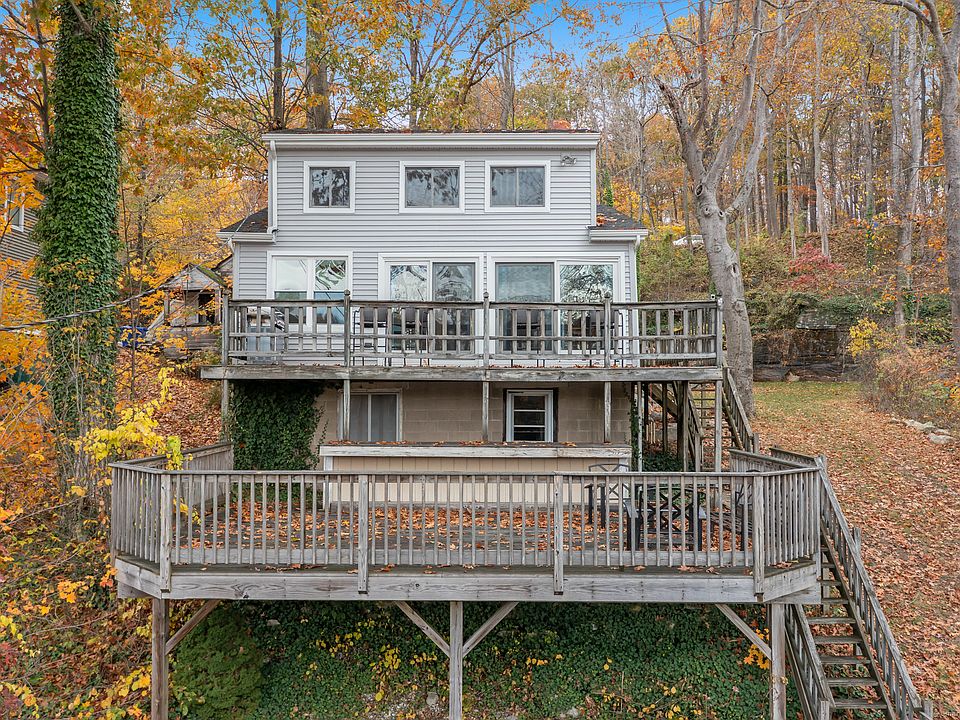 Waterfront, year-round home on Coventry Lake! If you're ready to start living the lake life, this just might be the home that makes your dreams come true. With an open floor plan that includes the kitchen, living room, dining room, 2 bedrooms, a full bath and laundry room on the main level and two more rooms in the loft, you can create spaces that fit your lifestyle. A vaulted ceiling and exposed beams add character to the kitchen while the wood stove and hardwood flooring adds charm and warmth to the living room and dining rooms. The open floor plan allows you to take in the lake views and welcomes sunlight into this home through the sliders that line the front of the house. Imagine watching UCONN rowers, water skiers, paddle boarders, sailboats, eagles soaring over the lake and fireworks celebrating 4th of July from your very own dining room, living room or decks. Imagine taking in sunrises to the left and sunsets to the right from your own property. Imagine playing yard games and sitting around the firepit with your friends and family. If you can imagine yourself living the lake life, then this might be the house for you! The walk out basement provides additional storage space. This home is connected to sewers. There's parking for 6 vehicles at the top of the lot. Stairs lead to the level back yard. This home is conveniently located just 4 miles from UCONN and 25 miles from Hartford. The dock has been removed from the lake for the winter. Great home for a great price!