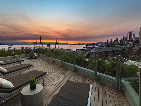 Amazing waterfront / Pioneer Square location. Rare unit with balcony that faces Lumen Field. Includes wall-mounted 55" television and Samsung sound system. Bosch appliances. Includes washer/dryer. Rooftop fitness center, lounge, BBQ stations and puppy pee patch. The 360 degree views have to be seen to be believed. Incredibly convenient for commuting. Two blocks away from hwy 99 and three blocks from I-90 / I-5.