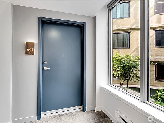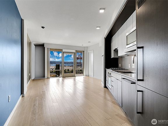 Experience iconic Pioneer Square living in this modern 1-bedroom home within the historic Johnson Plumbing Building. Sleek designer finishes, premium appliances with gas range, quartz countertops, and hardwood floors throughout. Enjoy unobstructed Puget Sound views from your spacious deck accessible from both the living room and bedroom. Floor-to-ceiling windows, A/C, and a full-sized washer/dryer complete the home with 1 parking spot. Luxury amenities including a 24/7 concierge, fitness center, and a rooftop deck with 360° views. Located next to Lumen Field, Gridiron is steps from Seattle’s best dining, entertainment, waterfront trails, with easy access to Pike Place Market, Link Light Rail, train station and major freeways.