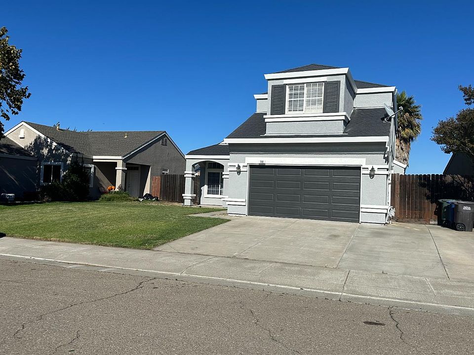 Step into a life of modern efficiency and refined style. This beautifully maintained, two-story home, built in 2001, featuring solar panels for reduced electrical bill! 1,859 square feet, the open-concept layout has been thoughtfully updated with fresh paint throughout and brand new, plank flooring. The heart of the home, the kitchen, features crisp white cabinetry and distinctive concrete countertops, offering a sleek, contemporary feel that makes cooking and entertaining a joy. The main living room provides an elegant welcome with sophisticated stone flooring. The home features, formal living room & dining room plus family room that is open to the kitchen with an built-in electric fireplace. Upstairs, the expansive owner's suite is a tranquil retreat. It features charming Plantation Shutters, a spacious walk-in closet, and a stunning en-suite bathroom with double sinks and a custom tiled shower. Three guest bedrooms and a second full bath for the guest rooms. Central Heat & Air. The backyard is an entertainer's dream, complete with newly installed grass, an automatic sprinkler system for easy maintenance, and the perfect setup for relaxation: a steel-frame gazebo and a ready-to-use concrete spa pad with an electrical hookup. 2 storage sheds for extra storage.