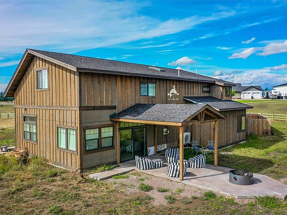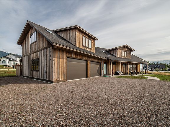 Welcome to this stunning luxury custom home in Columbia Falls. This spacious property features 5,200 Sq. Ft. of beautiful living space. With 5 bedrooms, 5 bathrooms, two living rooms, two kitchens and a theater room, on 2.4 acres this home provides ample space. On the main floor you will find an open concept living room, large kitchen and dining room. The primary suite is also on the main floor with dual walk in closets, walk in rain shower, large soaking tub and dual vanities. Upstairs you will find a second open concept living room/kitchen, 4 bedrooms, 3 bathrooms, theater room, and a game room. There are two separate entrances to the upstairs allowing this property to be used as a multi family home, or as short term/long term income producing rentals. Current owners short term rent upstairs as two separate rentals. There are so many ways to utilize this unique property, with no HOA or zoning the possibilities await. Contact Quincy Smith 406-291-9249 or your real estate professional.