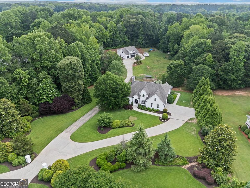 Tucked away on a completely level and secluded 4-acre lot in desirable Canton, Georgia, this extraordinary estate offers over 7,500 square feet of refined indoor-outdoor living, including a stunning main residence and a separate guest house with a 5-car garage. Perfectly located near Downtown Woodstock, Holly Springs, Blanket Creek Park, and top-rated schools, this home blends timeless craftsmanship with modern luxury. What truly sets this property apart is its rare, grandfathered status. Due to zoning changes in Cherokee County, properties of any acreage are no longer permitted to add a second dwelling like this. That means this estate offers something no other property in unincorporated Cherokee County can replicate today: a versatile, legally recognized additional dwelling unit (ADU). Whether used as an in-law suite, guest quarters, gym, office, or car-collector's showcase, the possibilities are endless-and irreplaceable. The primary home offers 5 bedrooms and 5.5 baths, beginning with a dramatic two-story foyer and soaring vaulted ceilings. A custom steel front door opens to a light-filled floor plan finished with red oak hardwoods and premium detailing throughout. At the heart of the home is the expansive gourmet kitchen, outfitted with an oversized island, stone countertops, custom cabinetry, walk-in pantry, and professional-grade Viking and Wolf appliances. Flowing seamlessly into the living and dining areas, this space is perfect for entertaining. The luxurious upstairs primary suite is a private retreat, featuring vaulted ceilings, a spa-inspired bath with frameless glass tiled shower, soaking tub, dual vanities, and a large walk-in closet. Three additional bedrooms and two updated full baths complete the upper level. A spacious main-level in-law suite with its own en suite bath adds flexibility for multi-generational living. The daylight basement provides a bright, loft-style flex space ideal for a media room, game room, or gym. Outdoor living is enhanced by an oversized entertaining deck with covered lounge, stone fireplace, and a serene koi pond with waterfall. A long, private driveway leads to the detached 1,900 square foot guest house, which includes 2 bedrooms, 1.5 baths, a spacious living room, full dining area, and a modern island kitchen with quartz countertops and stainless appliances. The guest bath includes a frameless glass shower and granite double vanity. Below, the massive 5-car garage includes a half bath and workshop space, currently used as a private onsite gym. Perfect for car collectors, hobbyists, or anyone seeking versatile space. The expansive grounds not only provide privacy and multiple driveways for RVs, boats, or work trucks, but also enough room to build the pool of your dreams-making this the ultimate resort-style retreat. This remarkable estate delivers elegance, privacy, and a level of versatility that cannot be recreated anywhere else in Cherokee County. With its grandfathered ADU, 7 total bedrooms, 6 full and 2 half baths, and unmatched flexibility, this property is truly one of a kind. Schedule your private showing today to experience what no other home can offer.