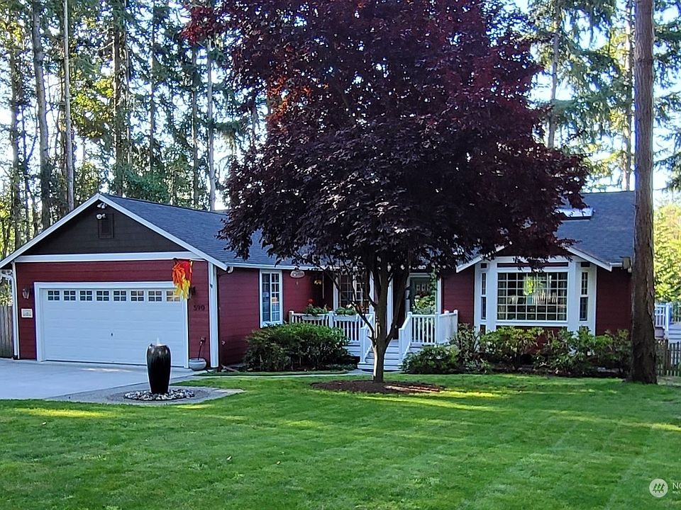 Stunning one-level home. First occupied in 2012, and beautifully customized with top-quality materials. Great room layout up front with a vaulted ceiling, skylights, large kitchen island, granite countertops, hardwood floors, and a cozy propane fireplace. Central heating and A/C from a high-efficiency heat pump. Front and rear Trex decks, fenced back yard, and a distant view of Admiralty Inlet. Bonuses: whole-house generator, water filtration system, and generous crawl-space storage. 1792 sq. ft. of finished space plus the insulated garage add up to 2276 sq. ft. of insulated space. Convenient to Freeland, South Whidbey State Park, and the public beach at Bush Point. Just 20 minutes from the ferry.