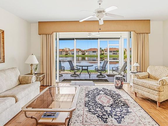 Marco Island - rarely available first floor unit in Club Marco! Welcome to Club Marco, a gated community boasting a pristine pool and vibrant pickleball & tennis, perfect for active lifestyles. The location of this 2 bedroom plus den condo is ideal. Just two blocks to the public beach access and the Marco Walk Plaza with 5 star dining, shopping and entertainment. This condo opens up to a lanai with beautiful lake views.The home is currently set up as a 2 bedroom and den. The front entry screened porch welcomes you to this spacious open floor plan. Updates include new roof, impact windows and sliders. Beautiful view of the lake and the softly lit fountain in the evening. Your own private garage offers extra storage for all of your beach equipment and golf clubs. This community is pet friendly and very walkable. Community amenities include heated pool, club house, tennis/pickleball, lake walking path and BBQ. All surrounded by the beautiful, gated grounds of Club Marco.