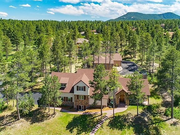 Enjoy a true Colorado experience nestled in the Pines & surrounded by million dollar homes! Enjoy the quiet solitude of this unique custom home sitting on .58 acres & features 5 bed, 4 baths & 4255 finished sq.ft. with tons of curb appeal! The main level boasts the master suite, & a large 5 piece bath including a jetted tub! The living room includes beamed ceilings, rock fireplace, built-in wood shelves, a TV shelf & access to the covered front porch. The kitchen offers a large freezer/fridge combo, 5 burner gas cook top, large island, & separate dining area. The upper level has an additional 3 large bedrooms & 2 baths. The large family/bonus room features hardwood flooring, fireplace, curved wet bar w/fridge great for entertaining. The unfinished lower level has an additional 2301 sq.ft. Over sized 3 car garage. Close to eateries and shops in Castle Rock, Bear Dance Golf, hiking & biking trails. Convenient location between Denver Tech and No. Colo. Springs! (Seller is agent/owner)