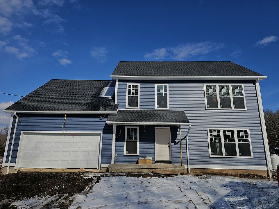 This stunning new construction Colonial, with an estimated completion date of March 2025, offers over 2,200 square feet of living space on a spacious .58-acre lot. The main level features an open floor plan, perfect for modern living, with a well-appointed kitchen boasting island seating, a formal dining room, a cozy living room complete with a fireplace, and a convenient half bath. Upstairs, the expansive Primary Suite offers a walk-in closet and a luxurious full bath. Two additional large bedrooms share a second full bath, providing ample space for family or guests. Additional highlights include propane fuel, central air, a 2-car garage, public water and a septic system. The home's roof comes with a 50-year transferable warranty for peace of mind. Customization options are available with allowances for appliances, lighting, paving, landscaping, mirrors, vanities, kitchen cabinets and countertops, shower surrounds, and the fireplace surround. This home truly offers the perfect blend of luxury, comfort, and functionality.
