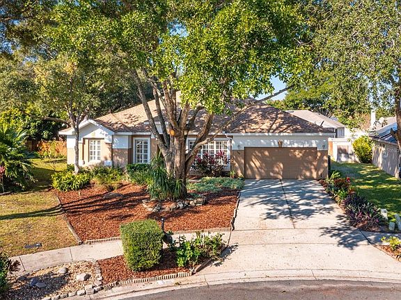 They say location is everything! Welcome to this quiet, serene, great community in the heart of Lake Mary that is close to everything! This 4 bed, 3 bath home with dedicated office in a cul-de-sac and on an oversized Lot with a park-like backyard is a gardner's dream! Sit and enjoy your morning coffee on the screened-in back porch overlooking the tranquil backyard with mature landscape, trees and nature that includes gardner boxes for your planting delight. This home has almost 2600 sq ft, with a split bedroom floor plan and a great kitchen open to the family room and overlooking the backyard. The kitchen has been updated with granite counters, stone backsplash and stainless steel appliances with breakfast bar and breakfast nook. The house has been refreshed with all new neutral paint throughout, new carpet in the primary and 4th bedroom and office, trimmed trees and landscape and more! The primary bathroom has been refreshed with an updated shower, granite counters and garden tub. The roof is 2016, HVAC is 2021, Water Heater is 2023 it's move-in ready and a blank slate for your personal touch! The location is prime with great school systems, close to hospitals, restaurants, shopping and all major highways are less than 2 miles away.