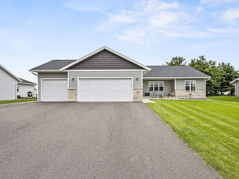 Why wait months to build when this nearly new, move-in ready home is already packed with upgrades and style!? Offering over 2,300 sq. ft. of finished space, the open-concept main level creates a seamless flow for both entertaining and everyday comfort. The gourmet kitchen is a true centerpiece, featuring granite countertops, a central island, corner pantry, and stainless steel appliances. The great room is anchored by a beautiful tiled gas fireplace, while the private primary suite provides a serene retreat with dual vanities, granite surfaces, dual closets, and an elegant tray ceiling. Additional appointments include a mud/laundry room with custom storage, an insulated garage with expanded parking pad, plus front and rear concrete patios for outdoor enjoyment. A 12x16 lofted shed and 5-zone underground sprinklers with point well add convenience and value. The lower level extends your living space with a spacious family room, fourth bedroom, and full bath.,Energy Certified for efficiency and ideally located near shopping and highway access, this home presents a rare opportunity to enjoy modern luxury without the wait of new construction.
