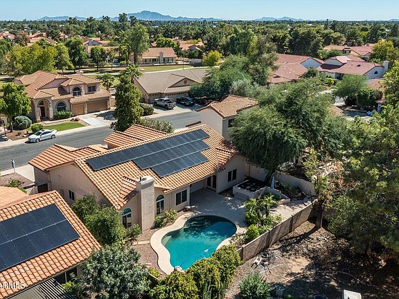 Rare Basement Home! This spacious residence offers room for everyone & everything, plus more with 5 bedrooms, a dedicated office, a game/media room in the finished basement & a 3 car garage. Discerning buyers will appreciate the thoughtful updates and timeless appeal. The main level includes a living/dining, family room, kitchen, office, primary suite, 2 bedrooms a hall bath and laundry. The lower level showcases a large game/media room, 2 additional bedrooms and hall bath. The private backyard boasts a sparkling pool, above ground spa, covered patio, additonal decking & mature citrus trees. Enjoy low electric bills with seller owned solar. Ideally located on a quiet cul-de-sac street, near top schools, parks, lake, greenbelt, shopping/dining, with quick access to the 101 and 202 freeway