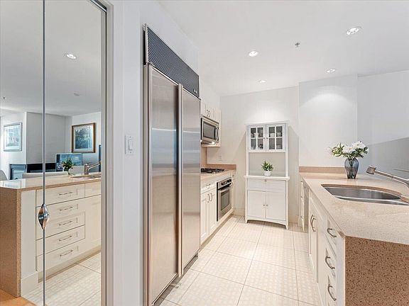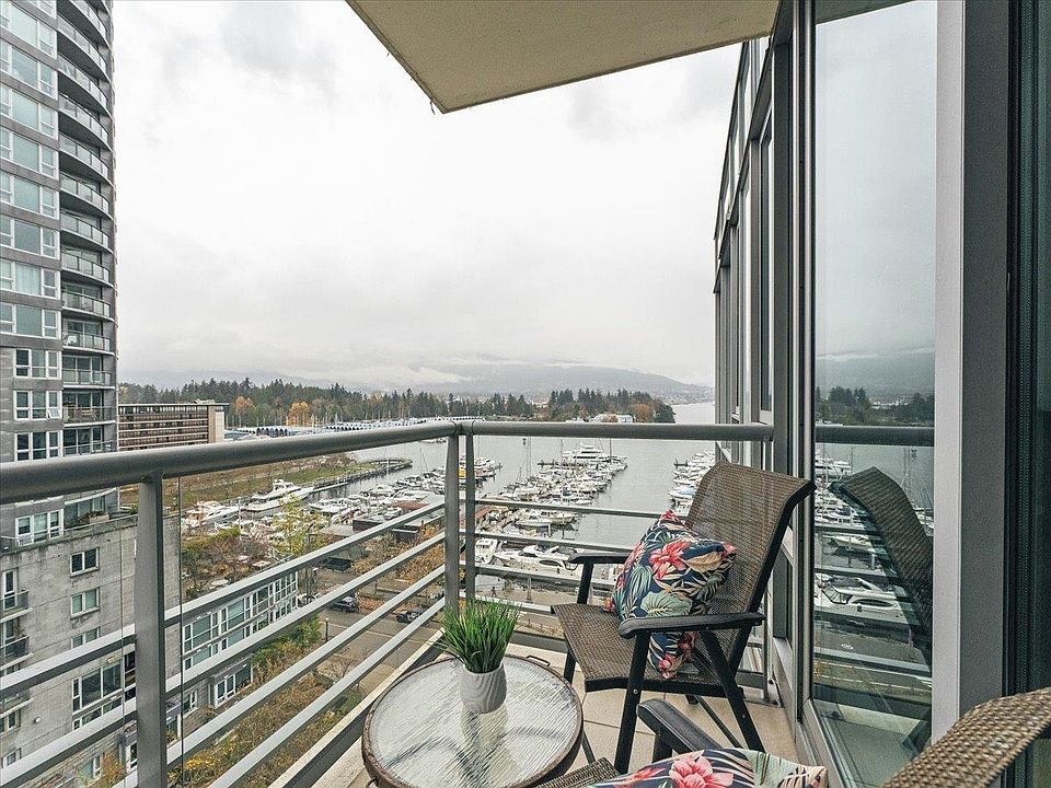 Experience luxury living at Cascina in Coal Harbour. This elegant one-bedroom home offers beautiful views of Coal Harbour, Stanley Park and the North Shore mountains. Fully renovated featuring white kitchen cabinetry, a waterfall island, Caesarstone counters and Sub-Zero/Bosch appliances. The living room includes a gas fireplace, automatic blinds and opens to a balcony with lovely water and city outlooks. Enjoy A/C, high-end hardwood flooring, a spacious bathroom with heated floors, and a generous bedroom that fits a king-size bed. Meticulous condition with access to top-tier amenities: indoor pool, gym, sauna, hot tub, library, party room and 24-hour concierge.