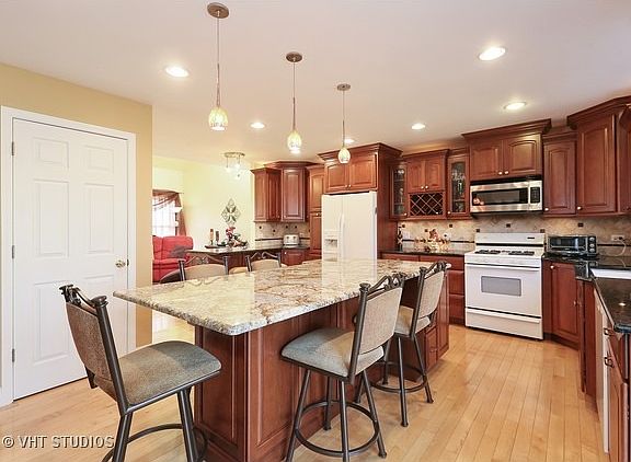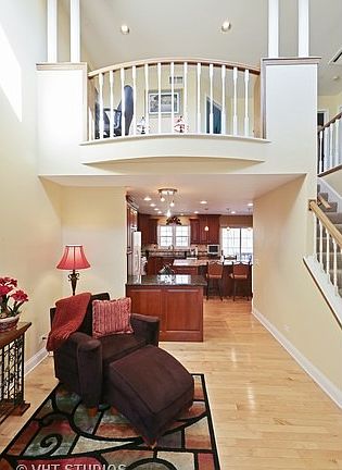 Gorgeous townhome backing to forest preserve. Many architectural features. Remodeled first floor has high end kitchen with custom cabinets , oversized island, granite counters, 2 breakfast bars & desk area. It is amazing. Family room has beautiful fireplace. Master has private bath & his & her walk in closets. Loft over looks foyer. Finished basement has 2 rec rooms, office and laundry room. Absolutely stunning.