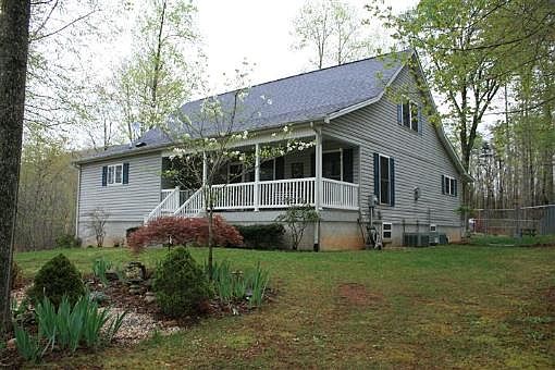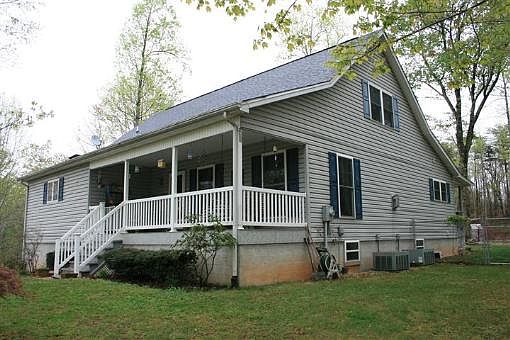 1 1/2 Story Country Home in excellent condition located in Patrick County, VA (590 Old Mill Rd, Patrick Springs, VA). Main Floor: Kitchen Dining Room (21'6" x 20'6) lots of cabinet space. Foyer office entrance area (11'6" x 17') hardwood floor. Living Room with fireplace (24'6" x 17')and another area (5' x 13') hardwood floor. Master Bedroom (13'6" x 20') hardwood floor. Master Bath (8'5" x 14'4") Double Sink, garden tub and shower. Master Walk-in Closet (6'9" x 10'6") hardwood floor. Hallway and Laundry Area (11'6" x 11') hardwood floor. NOTE: Main floor only is handicap accessible - 3 foot wide doors. 2nd Floor: Stair width to second floor (4') hardwood. Bedroom (17' x 14') hardwood floor. Sitting Area (14'x 11') with closet (14' x 3') hardwood floor. Full bath (8'6" x 14'). Full unfinished basement. Hobby room with concrete floor (22'2" x 17'6"). Extra Storage area (23' x 13'2"). Garage - 1 car (19'6" x 43'). Garage door (16' x 7'). Half bath (5'6" x 8'). Front porch (24' x 8') tile floor. Front door (Stain glass-Mahogany door). Storage building (8' x 10'). Carport (12' x 20'). RV hook-up in back of the house. Fencing around the house for children or animals. 4.01 Acres. All wooded except approximately 1 acre in yard around the house. Views. Paved Driveway. 5 minutes to Stuart, VA. 30 minutes to Martinsville, VA. 5 minutes to Elementary School and Middle school. Conveniently located - Within minutes to Churches, Hospital, Walmart, Schools and Restaurants. 45 minutes to Mt. Airy, NC. For additional information call listing agent 276-952-5502 or listing office 276-694-2646. Shown by appointment only. 24 Hour notice.