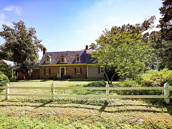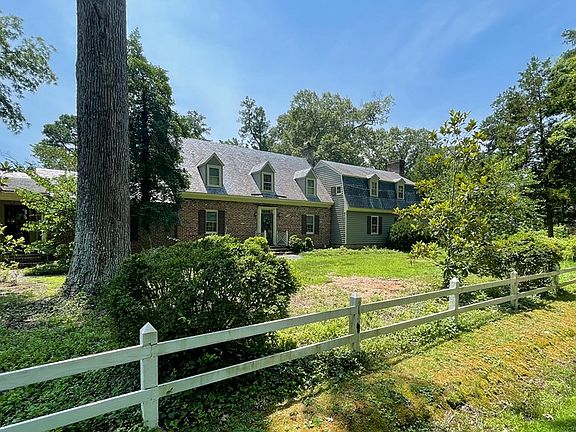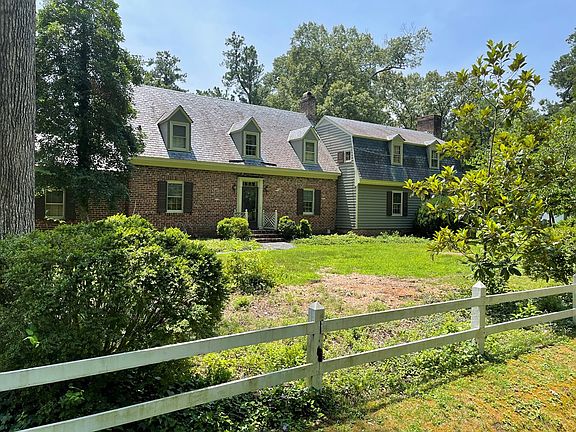 On the broad, deep Pamunkey River, this classic colonial Williamsburg design provides a private sanctuary with 130 feet of riverfront. A first offering - this thoughtfully designed home reflects quality and durability. The exterior is early brick with redwood siding and a slate roof. The interior offers a gracious floor plan with walnut floors, 3 fireplaces, walnut paneling, and secret doorway. The first floor features a library with handsome bookshelves, large living area with a fireplace, a formal dining room with a butler's pantry, and a country kitchen with a breakfast/family room. An expansive primary bedroom is located on the main floor with a spacious en suite bathroom. The second-floor primary bedroom includes a bathroom and a walk-in closet. There are three charming guest bedrooms & a full bathroom. The remarkable characteristics of this home are the quality details throughout, including a cellar pub with a bar, a fireplace, & a separate entrance. The grounds are highlighted by two-rail fencing, along the road; a terrace garden, enclosed by a picket fence; and the extensive, park-like grounds on the riverside with an additional building site available.