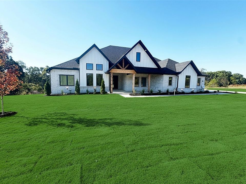 Located in Serenity Ridge, NWA's newest gated luxury subdivision, this beautifully designed 2-story home sits on a spacious 1-acre lot and offers the perfect blend of luxury and comfort. Featuring 5 bedrooms, 4 bathrooms, and a dedicated office, this home is ideal for both entertaining and everyday living. The kitchen boasts quartz countertops, custom cabinetry, and upgraded stainless steel appliances. Enjoy year-round outdoor living on the covered back patio with a brick fireplace and gas logs. Additional features include a welcoming front porch and thoughtfully selected finishes throughout. Taxes based on land only. Builder is offering $15,000 in concessions. Estimated completion date is mid November.