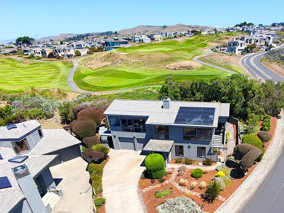 Your own coastal spa nestled on a coveted End Parcel bordering the golf course! This superior 3 Bed, 3 Bath, Fireplace, 2 Car Garage retreat comes complete with two primary suites, a garage bay gym, secluded hot tub, water and golf course views, all shielded by mature privacy hedges and gently rolling terrain. The great room / kitchen is elevated to capture sweeping views from Tomales Bay to Bodega Head. High cathedral ceilings, wall to wall windows, and decks off all bedrooms create seamless indoor/outdoor flow. Solar panels, EV charger, Backup Power Wall included. Situated on the Bodega Harbour Golf Course amenities include a club house, restaurant and bar, work out facility, heated pool, pickleball, basketball, bocci ball and tennis courts. This exceptional coastal location has multiple hiking trails, beaches, exquisite canyon terrain, exceptional bird watching and is dog friendly. You'll never want to leave this paradise!
