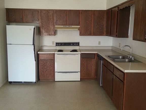 Single story ground level unit of a four-plex with private block-walled yard! Freshly Painted w/Carpet and vinyl flooring inside, and lots of closet space. Large open eat-in kitchen with fridge, range/oven and dishwasher and plenty of room for a large dining table. The living room direcly in line with kithen provides a large living area where one could see the tv while preparing dinner! Feel completely private with the front door being inside the gate of your own yard enclosed within a 5ft block wall. Each unit has it's own storage room and laundry room with washer/dryer hookups located outside. It's a short walk with your arms full since parking is immediately in front of your gate. Pets allowed upon approval with additional deposit, breed and weight restrictions may apply. Sewer & garbage service are included. Tenant pays electric and water. Tax rate is 2.2%.