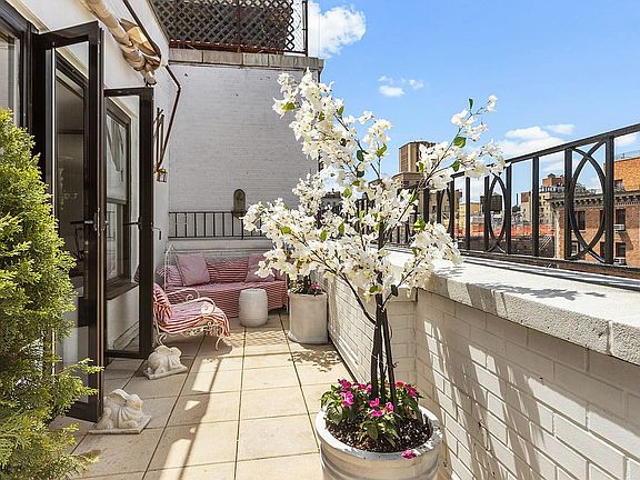 Rare opportunity to live in a prewar jewel of a one bedroom penthouse with two terraces---enjoy your morning coffee on the east facing terrace and then your afternoon cocktail on the west facing terrace---you can have it all! When the weather shifts you will be able to enjoy your WBFP in the oversized living room. The rooms are beautifully scaled and are great for entertaining. Great separation of space with the bedroom and bathroom (which sits just outside the bedroom) off a separate hallway for privacy. The windowed kitchen has stainless appliances and marble counter tops and marble subway tile backsplash. The kitchen cabinets go almost all the way to the ceiling to take advantage of additional storage. The primary bedroom is oversized and easily accommodates a king-sized bed. There are 2 closets in the bedroom with a total of 5 closets throughout the apartment. The windowed bathroom has a beautiful glass enclosed shower along with a floating vanity and a Toto toilet and brass fittings complete the bathroom. Light surrounds you in this special home! Whitewashed hardwood floors run throughout the apartment in a basket weave design. It feels like you are walking into a serene dream! PH B shares the floor with only 2 other penthouse homes.