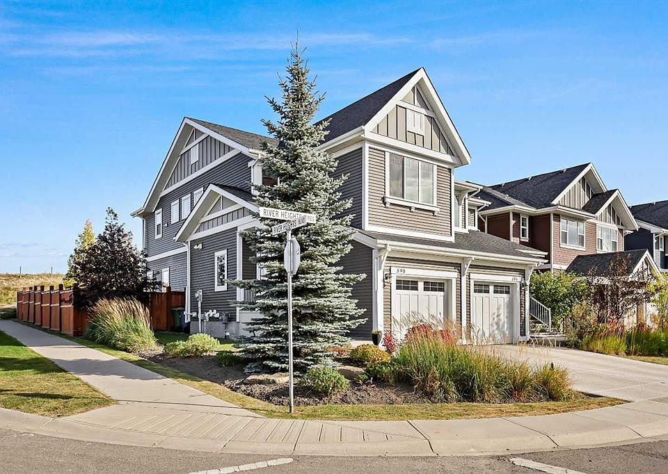 Welcome to this stylish, fully finished 2-storey home in the heart of River Heights, offering over 1,700 sq ft above grade plus a fully developed basement. With 4 bedrooms, 3.5 bathrooms, and a 4,036 sq ft landscaped lot, this property strikes the perfect balance of modern design and everyday function. From the moment you arrive, the curb appeal stands out with craftsman-style details, a welcoming front entry, and mature trees. Inside, the open concept main floor showcases rich hardwood flooring, recessed lighting, and oversized windows that fill the home with natural light. The contemporary kitchen is a showpiece with full-height cabinetry, stainless steel appliances, a sleek tile backsplash, pantry storage, and an expansive dining area that flows seamlessly into the living room, creating a warm and inviting space for entertaining or relaxing with family. Upstairs you’ll find a bright bonus room, three generously sized bedrooms, Laundry, and 2 full bathrooms. The private primary retreat offers a spacious walk-in closet and a 4-piece ensuite with modern finishes. The fully finished basement adds incredible versatility with a large recreation or media room, an additional bedroom, a full bathroom, and plenty of storage. This level is perfect for a home office, guest suite, or children’s playroom. Step outside to your backyard oasis, where the fully landscaped and fenced yard has been designed for both comfort and entertaining. A large deck, privacy screens, custom planter boxes, and lush perennials create the ideal setting for summer barbecues, cozy evenings, or simply enjoying the outdoors. Additional highlights include an attached garage with extended driveway parking, upgraded lighting, a modern kitchen with stainless steel appliances, and an excellent location within the family-friendly community of River Song. Close to schools, parks, pathways, and amenities, this home truly offers it all—style, function, and an outdoor retreat designed for living. 590 River Heights Crescent, Cochrane – move-in ready and waiting for you!