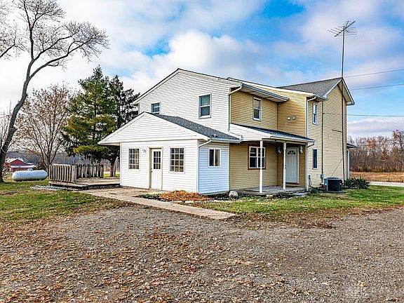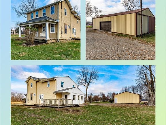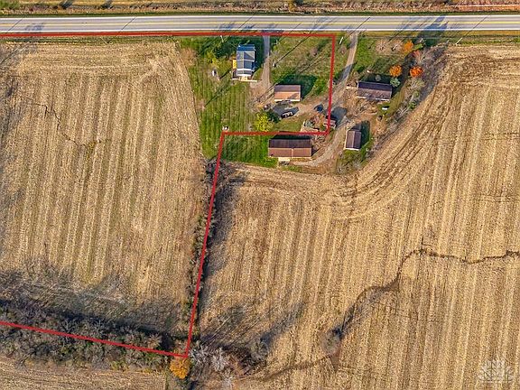 Country living at it's finest! Check out this charming farmhouse on 7.20 acres, including 5 tillable acres. The perfect blend of space ,privacy, and possibility. With 4 bed, 2 full baths with 2,016 sq ft of cozy farmhouse comfort. So many updates from 2021 to 2025. AC, flooring, paint, windows, Appliances, both bathrooms, kitchen counter tops, gutters, roof, garage door, new deck, light fixtures. all up to county code. You'll love the original farmhouse beams in the dining room leading into warm, inviting living space. Laundry room on second floor for your convenience. Enjoy peaceful mornings on the quiet front porch or entertain friends on the new deck with plenty of yard for the kids, pets, or gardening. Large over sized garage, 48x27, with new garage door, cement floor, electric, large work area. This has been recently surveyed with house and 7.20 acre. This does not have a shared driveway unless you purchase house and acres next door. (This is zoned Agricultural and residential). Country charm, modern updates, and room to roam, this one is a must see.