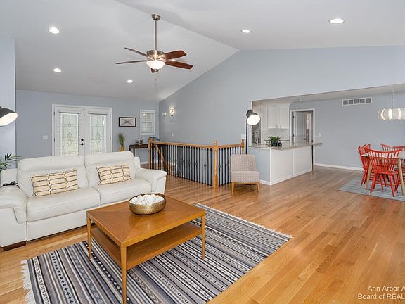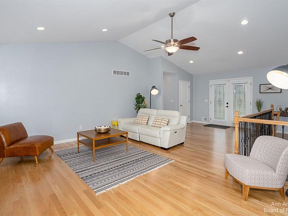 Quiet, country ranch completely remodeled inside in 2016. Large custom kitchen with gorgeous granite counter tops, white cabinets, stainless appliances, tile backsplash, lots of storage, and ample counter space for preparing a feast or sitting down to a casual breakfast. Dining area and great room have amazing views of 4 acre nature preserve, a cozy fireplace and beautiful hardwood floors. Open concept, split design floor plan utilizes this space to separate the primary bedroom from two others on the main floor. Perfect for peace and quiet from bedrooms or offices. Large primary bedroom suite with spa-like bath with granite counters, ceramic shower and walk-in closet. Finished lower level has large living area with a wet bar as well as a 4th bedroom/office and full bath, making this a grea great place for entertaining or hosting overnight guests. Large deck, storage shed and 30x40 pole barn. Barn has updated electrical and would make a great storage area for your toys or a workshop for your hobbies or business. Mechanicals replaced with remodel in 2016 and whole house and barn generator provides extra comfort and security. Like new, move-in ready condition, natural gas and desirable Hartland Schools., Primary Bath