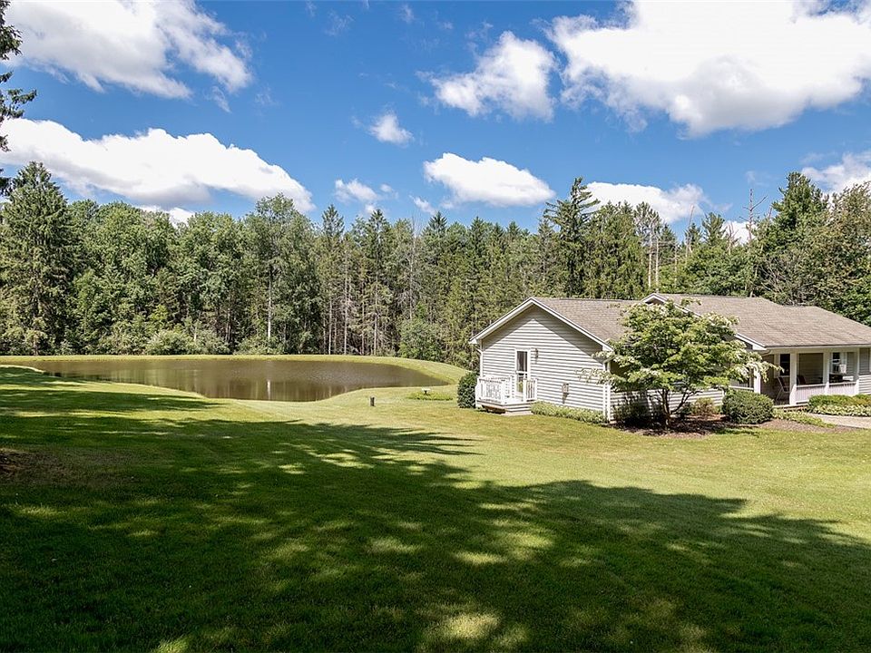 This is a very private, peaceful property with a large pond. Many extras stay in this custom built home including TV above fireplace and two side cabinets housing its components. Also included is a custom made work bench made by seller’s German cabinetmaker’s Dad over 70 years ago in addition to all tools in workshop as well as two chain saws and much more. House is move in ready. No closing until 8/16/24. Delayed negotiations July 2 at 6pm.