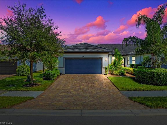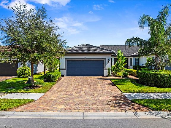 BREATHTAKING LAKE & GOLF COURSE VIEWS! Welcome to your Florida dream home in the 55+ community of Del Webb Naples. Perfectly situated on a premium lot, this impeccably maintained CASCADIA VILLA (end unit) offers captivating views of both the LAKE and the 2nd FAIRWAY of Panther Run Golf Course—all from your EXTENDED SCREENED LANAI with a beautiful PICTURE-FRAME screen design. You’ll love relaxing on the PRIVATE lanai while taking in the SUNRISE - the perfect start to every day in paradise. Inside, you’ll find 2 bedrooms plus a den and 2 full baths, thoughtfully designed for both comfort and style. The open-concept layout features TILE FLOORING THROUGHOUT, custom window treatments, and the KITCHEN features quartz countertops, abundant cabinetry, and UPGRADED APPLIANCES. Elegant ceiling fans and designer lighting add a warm, welcoming touch throughout. The PRIMARY SUITE is a private retreat, complete with dual vanities, a large shower, and spacious closets including a walk in closet. Enjoy peace of mind with IMPACT RESISTANT WINDOWS, a screened front entry, and a GARAGE that boasts epoxy flooring, overhead dual storage racks, and an insulated door. Additional perks include termite protection included in your HOA fees and lower insurance premiums thanks to the attached villa design.This home comes with the SOCIAL MEMBERSHIP, but take note GOLF LOVERS, Panther Run Golf Club offers optional MEMBERSHIPS with premium golf experiences just steps from your backyard.In Del Webb Naples, you’ll enjoy WORLD-CLASS AMENITIES that rival luxury resorts: dine at the Rusty Putter Restaurant, soak in the RESORT-STYLE or LAP POOLS, break a sweat in the state-of-the-art FITNESS CENTER, and play your way through PICKLEBALL, TENNIS, bocce, billiards - even a top-tier GOLF SIMULATOR! Need groceries, church, or a bite to eat? Just hop in your golf cart and cruise into town - Publix and the heart of Ave Maria are just minutes away.This isn’t just a home - it’s a LIFESTYLE UPGRADE in one of Southwest Florida’s most vibrant 55+ communities. Don’t miss your chance to live where fun, fitness, and friendships flourish year-round!