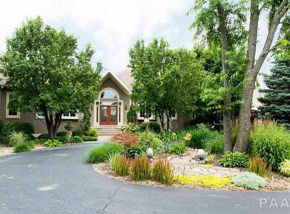 Located just outside of Peoria, and just one mile from I-74, this stunning home is a must see! Built by Hoffman Oaks, this home boasts an amazing open floor plan with huge great room, kitchen, formal and informal dining, and sunroom. In the walk out lower level, you'll find a large family room perfect for entertaining, spacious office, fourth bedroom and bathroom, and storage room. Generous master suite offers a roomy walk-in closet and luxurious en suite bath. Two more bedroom suites complete the main level. The over 4 acre backyard features beautiful landscaping, outbuilding, and playground. Listing provided by the Kepple Team at Keller Williams Premier Realty.